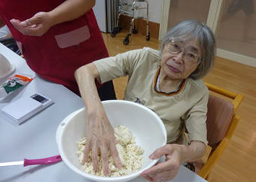 抹茶寒天グループと豆腐白玉団子グループに分かれて作りました。白玉は、人それぞれ大きさや形が違い、その人の個性が出ていてとても良かったです。 みなさん楽しく作業していました。